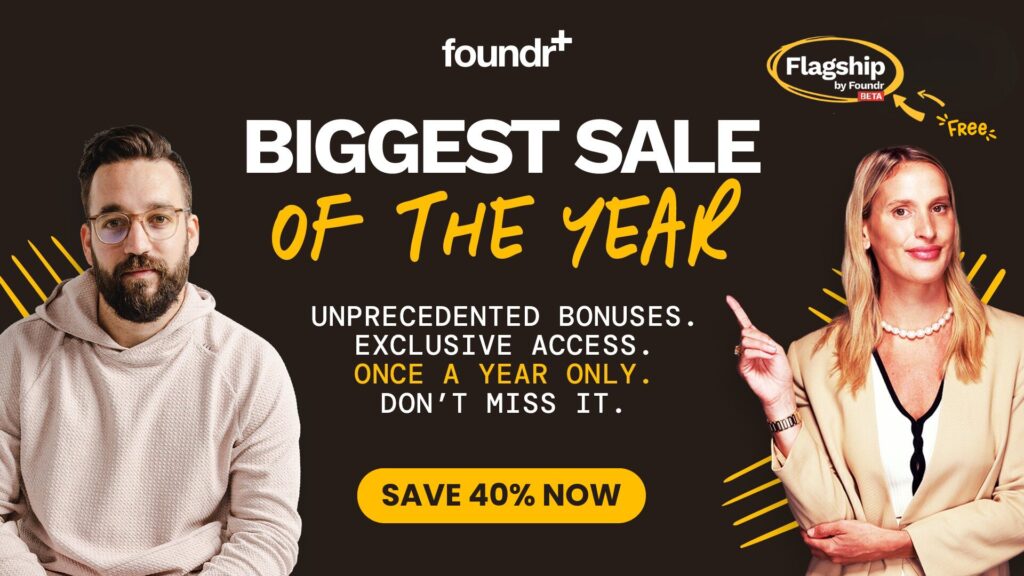 Your once-a-year chance to grow your ecommerce brand 3x faster with Foundr+, at the best price of the year.